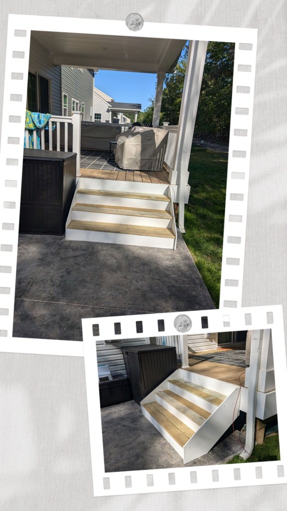 New construction: When this house was built they did not add stairs coming off the deck. Homeowner requested stairs to be built to match the original design of the deck.
